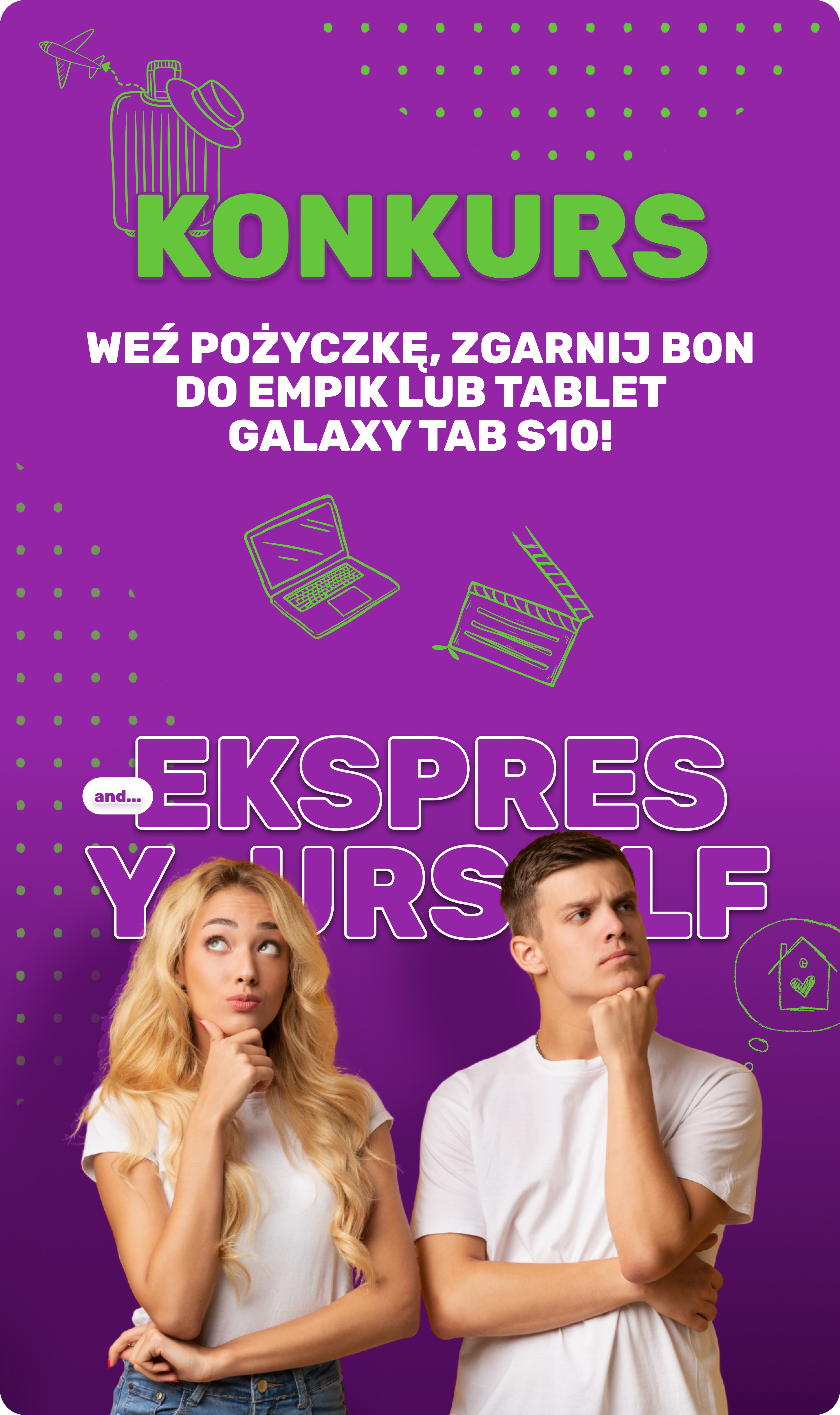 Administratorem Państwa danych osobowych przetwarzanych w związku z udziałem w konkursie „Ekspres Yourself z EkspresPożyczka" jest Argentum Capital sp. z o.o. z siedzibą w Warszawie ul. Solec 38 lok. 105, 00-394 Warszawa. Zgoda może być wycofana w dowolnym momencie przez przesłanie informacji na adres kontakt@eksprespozyczka.pl Szczegółowe informacje dotyczące zasad przetwarzania danych osobowych znajdą Państwo w Polityce prywatności oraz w Regulaminie konkursu.